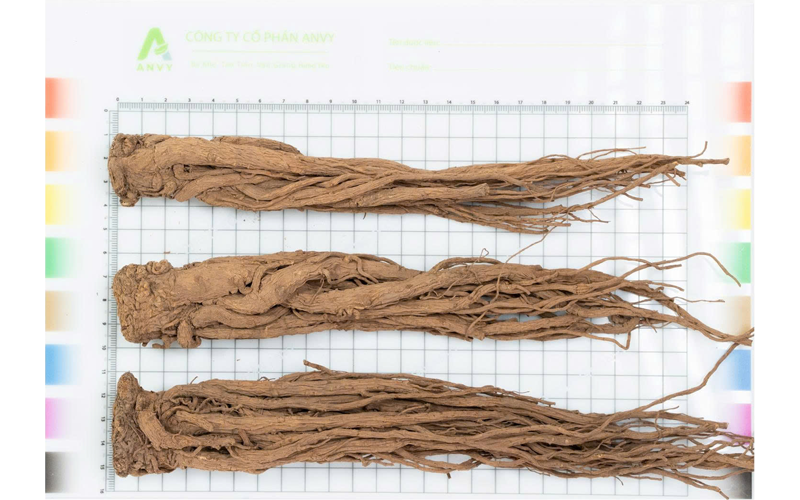 Rễ dài 10–20 cm, gồm nhiều nhánh, chia ba phần: quy đầu, quy thân và quy vĩ. Mặt ngoài màu nâu nhạt, có nhiều nếp nhăn dọc, mặt cắt ngang vàng ngà, thấy rõ vân tròn và điểm tinh dầu.