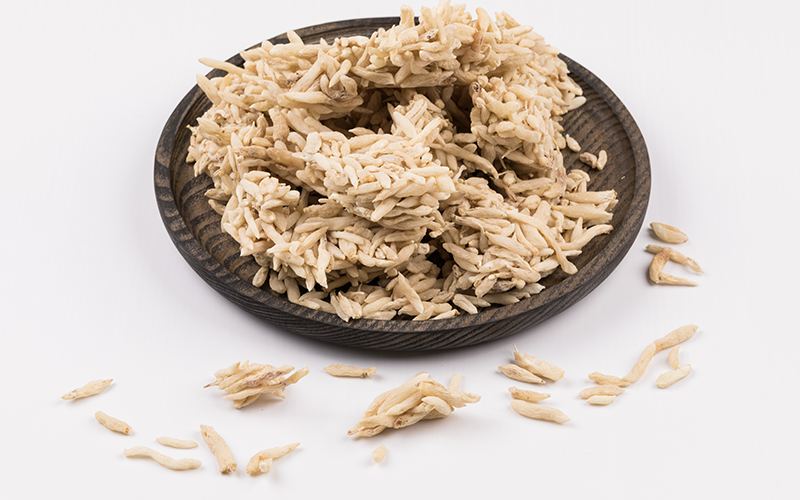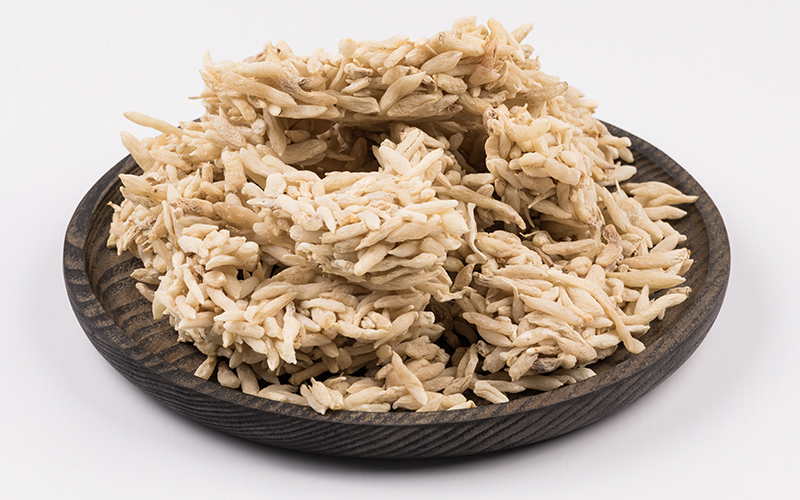 Dược liệu rút lõi, ruột trắng chọn. Rễ hình thoi, hai đầu hơi nhỏ lại. Mặt ngoài màu vàng nâu hoặc trắng ngà, có nhiều nếp nhăn dọc nhỏ; chất mềm dẻo, trong mờ. Mặt cắt ngang có lớp vỏ mỏng màu nâu nhạt, phần ruột trắng ngà, có lõi nhỏ ở giữa. Mùi thơm nhẹ, vị hơi ngọt sau đó hơi đắng.