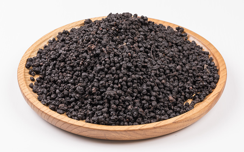 Quả hình cầu, đường kính 5 – 8 mm. Mặt ngoài màu đỏ, đỏ tía hoặc đỏ thẫm, nhăn nheo, có dầu, thịt quả mềm, đôi khi đỏ đen hoặc phủ phấn trắng. Quả có 1 – 2 hạt hình thận, màu vàng nâu, sáng bóng, vỏ hạt mỏng giòn. Thịt quả mùi nhẹ, vị chua; nhân hạt màu trắng, có mùi thơm, vị cay hơi đắng.