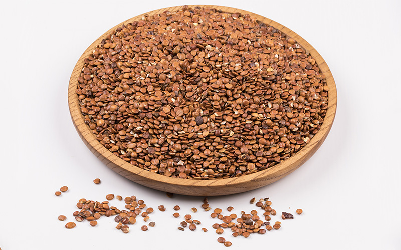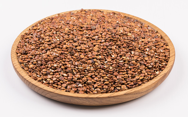 Hàng sống, đã lọc. Hình khối hoặc bầu dục, dẹt, bên ngoài màu đỏ tím, thể chất giòn, mùi không rõ, vị dịu, nhẵn và bóng